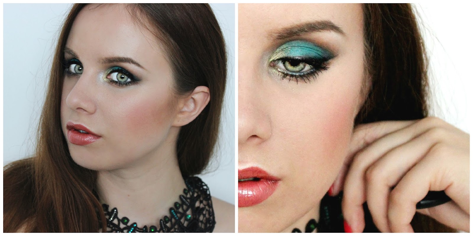 Keďže mám veľmi rada zelenú, chcela som po dlhej dobe vyskúšať niečo s matnou zelenou. Siahla som po neónovej paletke od E-style. Líčenie som chcela trochu spestriť trblietavým tieňom v kútiku oka a linkou. Potom mi došlo, že sa mi tento look úplne hodí k novozakúpenému náhrdelníku 🙂
