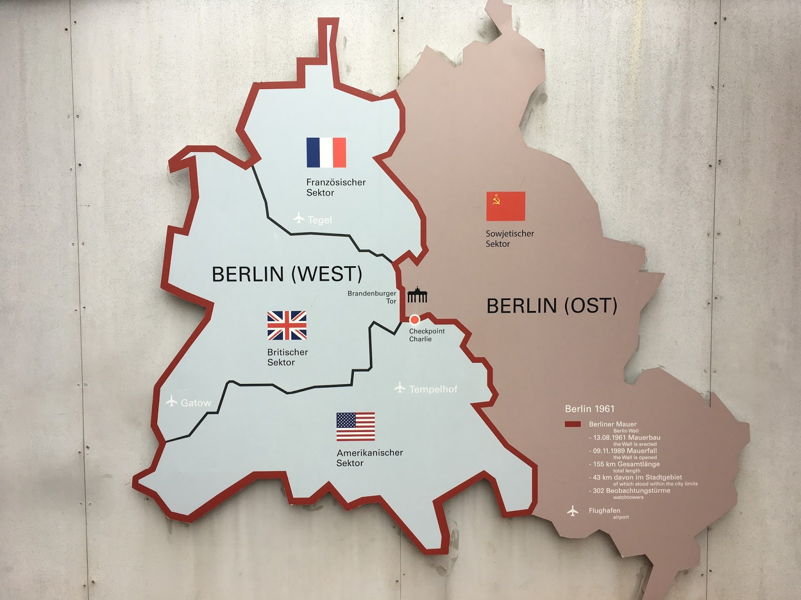 Checkpoint Charlie bol hraničný priechod medzi sovietskym zväzom a americkou časťou. Je veľmi známy vďaka historickým fotografiám, kde stoja oproti sebe tanky sovietskeho zväzu a americké. Taktiež sa často spomína a ukazuje v historických špionážnych filmoch (napríklad aj Bridge of spies). Za poplatok 3Eur sa môžete nechať odfotiť s americkými vojakmi 🙂